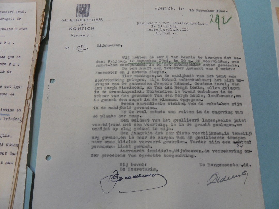 Op 10 november 1944 sloeg een V1-bom in aan de Kontichse Groeningenlei. Officieel was er één dode: een geallieerde militair. Maar via de 81-jarige Frans Van Dijck vernemen we hoe het verhaal moet worden aangepast: ‘Ik woonde samen met mijn ouders en twee oudere broers op een hoeve in Reet. Jos was twee jaar ouder en was op die 10 november toevallig op de verkeerde plaats…’ Jozef Van Dijck was onderweg toen de V1 aan de Groeningenlei insloeg. ‘Zwaar gekwetst werd hij naar een school in Berchem overgebracht’, vervolgt zijn broer 74 jaar later. ‘Daar overleed hij drie dagen later. Hij werd nog een week opgebaard in ons huis en werd dan begraven…in alle stilte. Een aantal jaren later werd het oude kerkhof van Reet opgebroken en wat er toen gebeurde met het graf weet ik niet meer…’ Frans weet nog maar weinig over het drama: ‘Wat er exact met mijn broertje gebeurde weet ik niet. Mijn ouders waren erg stug en probeerden alles te vergeten. Een van mijn enige herinneringen is dat Jos een dag na zijn dood met een kar door een boerenpaard getrokken werd overbracht. Maar voor de rest hebben we bijna geen foto’s, geen bidprentje, geen doodsbrief…’