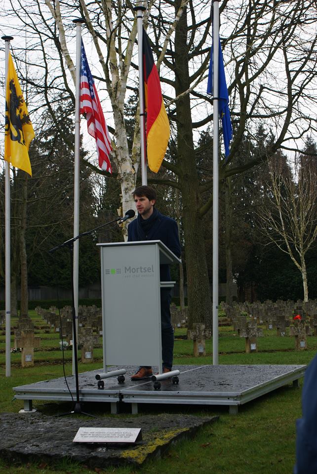 Gisteren was Mortsel weer eventjes stil. We herdachten het bombardement op het stadje, in 1943, dat 936 slachtoffers eiste. De zwaarste luchtaanval uit onze geschiedenis, dit jaar voor de 72ste keer herdacht. De burgemeester sprak meer dan honderd mensen, jong en oud, toe in een emotionele speech. Daarna volgde de vertegenwoordigers van de Amerikaanse en de Duitse ambassades. Beide spraken in het Nederlands, beide brachten een vredewens en uitten bijzonder veel respect voor de getuigen. Zoals elk jaar mocht ik afsluiten met een toespraak over mijn boek Tranen over Mortsel. Het werd een intens moment. Hieronder kan je de integrale toespraak lezen. 11047873_485563881597207_3889006635983839476_n Er staan hier 471 kruisjes achter mij. Je zou denken dat we in de Westhoek zijn, maar dit plaatsje heet Mortsel. En Mortsel is even goed een herinneringsplaats geworden. 471 kruisjes als symbool voor oorlogsslachtoffers. Geen 936 kruisjes, want tientallen slachtoffers van het bombardement zijn elders begraven in een familiegraf of in hun eigen gemeente. 107 lichamen werden nooit geïdentificeerd. 89 mensen bleven voor altijd vermist. Telkens ik hier kom, ben ik even geen historicus meer. Ik voel me op een plek waar de verhalen nooit meer weg te denken zijn. Elk kruisje herbergt een ontroerend verhaal. Iemand die gemist wordt. Iemand die er plotseling niet meer was. Iemand. Iemand. Hier een zevenjarig jongetje dat naar school ging en nooit meer terugkwam. Daar een oude man, die op 5 april genoot van het eerste lentezonnetje op het Gemeenteplein. Aan de ene kant een arbeider die werkte in de Erla-fabriek, het doelwit van het bombardement en voor altijd opging in de vlammen. Zijn familie vond hem pas na twee weken van zoeken, twee weken van aanschuiven bij de identificatiecentra, twee weken leven tussen hoop en wanhoop. Aan de andere kant een zuster die samen met de kinderen van haar eerste leerjaar werd gevonden in de bomput van Sint-Vincentius, gevonden door reddingswerkers die na 5 april nooit meer dezelfde waren. Er zijn enkele kruisjes die ik vandaag in het bijzonder wil herdenken. Het eerste is dat van Lydia Chovau. Haar neef Marcel Michel vertelde mij haar verhaal. Lydia was drie jaar op 5 april, toen ze samen de mama van Marcel uit Antwerpen vertrok. Ze namen de tram naar Oude God, om daar de bus te nemen naar Edegem. Daar zouden ze gaan bidden voor Marcel Foto 008 - familie Chovauwant hij zat in Duitsland, verplicht tewerkgesteld. Om halfvier stapten ze op de bus naar Edegem en Kontich, op het Gemeenteplein. Een minuut of twee later, de bus stond vertrekkensklaar, vielen de bommen. Een sloeg in vlak naast de bus en het voertuig, samen met de ongeveer dertig inzittenden brandde volledig uit. Lydia en haar tante kwamen om in de hel van de brandende bus. Na het bombardement zochten haar ouders hun kindje. Ze vonden enkel een uitgebrande bus, met daartussen een stukje van haar kleedje. Zo werd ze geïdentificeerd. Dat onmogelijke moment werd vastgelegd in misschien wel de bekendste foto van 5 april, het treurend koppel zijn de ouders van de driejarige Lydia Chovau. Mensen bij uitgebrande bus - AmsabHet tweede kruisje is dat van Greta Schouwenaars, het toen twaalfjarige zusje van de latere bekende schrijver. Clem Schouwenaars zocht samen met zijn vader urenlang in het puin van Greta Schouwenaarsde Sint-Lutgardisschool. Hij schreef er over: ‘Mijn vader was veertig jaar oud, ik tien jaar, drie maanden en één week. Toen we haar vonden, lag ze met één hand voor haar ogen, ongeschonden, slechts drie blauwe vlekjes. Daarom was het zo moeilijk te geloven dat ze net zo dood was als al die meisjes die we voor haar vonden. Mijn vader was veertig jaar oud, ik even oud als hij.’ 60 andere leerlingen van de Sint-Lutgardis werden net zoals Greta Schouwenaars dood van onder het puin gehaald. Louisa Drappier, toen 12 jaar, vandaag 84 en hier aanwezig op de herdenking, was een vriendinnetje van Greta. Zij zaten enkele minuten voordien nog naast elkaar in de klas en dan plots lagen ze onder het puin, maar Louisa leefde nog. ‘Ik voelde het aan mijn longen wanneer de bommen vielen’, vertelde ze in 2008 aan de interviewende jongeren. ‘Op een gegeven moment werd ik wakker. Al de balken waren naar beneden gevallen. Ik ben aan het roepen geweest tot iemand antwoordde. Vier mannen hebben mij uit het puin geholpen. Toen ik uit het puin was, zag ik de gang vol lijken. Plots zag ik aan het poortje mijn vader voorbijlopen. Ik riep en hij zag mij. Maanden nadien zat Annie Drappiermijn haar nog vol zand. Het was een pruik van stof. De geur was enorm vies, een diepe rotte geur die niet te harden was.’ Ze sukkelden naar huis, maar daar wachtte het meest afschuwelijke nieuws: Annie, het driejarige zusje van Louisa, had het bombardement niet overleefd. Zij was samen met de mama in de Delhaize aan het Gemeenteplein. Haar kruisje staat hier op de tweede rij, het laatste aan de rechterkant. Een volgend kruisje is dat van Louis Vrints, de neef van Louisa en Annie Drappier. Hij was veertien jaar toen de hel boven Mortsel losbarstte. Hij zat in het laatste jaar van de Guido Gezelleschool in de Eggestraat. 23 van zijn schoolgenootjes overleefden het niet. Zij liggen hier vooraan op de eerste rij. Thuis vernam Louis het nieuws over de dood van zijn driejarig nichtje Annie Drapier. Anderhalf jaar later, toen ons land reeds bevrijd was en Louis zeventien was geworden, ging hij naar de bioscoop in Antwerpen. Dat mocht niet van zijn moeder, door het gevaar van de V-bommen. Stiekem ging hij hout kappen voor zijn tante en trok hij – te Louis Vrintsvoet, want de tram was door het bombardement nog steeds onbeschikbaar – naar Antwerpen. Het was 16 december 1944, om twintig na drie. Terwijl Louis met honderden anderen genoot van een film over Buffalo Bill, viel een V2 op de Cinema Rex. Louis en 566 andere toeschouwers werden gedood. Hij had 5 april overleefd, maar de Rex niet. Omdat hij in Mortsel woonde, mocht hij op hetze
