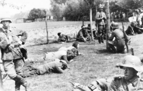 Maar op het einde van de Achttiendaagse Veldtocht waren er toch enkele bloedige incidenten. Toon (°1919, Izegem) zat bij zijn ouders in de kelder ondergedoken toen de eerste Duitsers in de West-Vlaamse stad verschenen: ‘Ze waren heel gemakkelijk tot Izegem geraakt, maar toen beweerden ze dat er Belgische sluipschutters, als burgers verkleed, op hen hadden geschoten. Ze namen de voorname mensen gevangen om hen later eventueel te berechten.’ Vooral op plaatsen waar hard gevochten was gebeurden zulke incidenten. Izegem zou volgens Toon gered zijn door de capitulatie van België op 28 mei. Maar niet overal kwam de wapenstilstand op tijd.