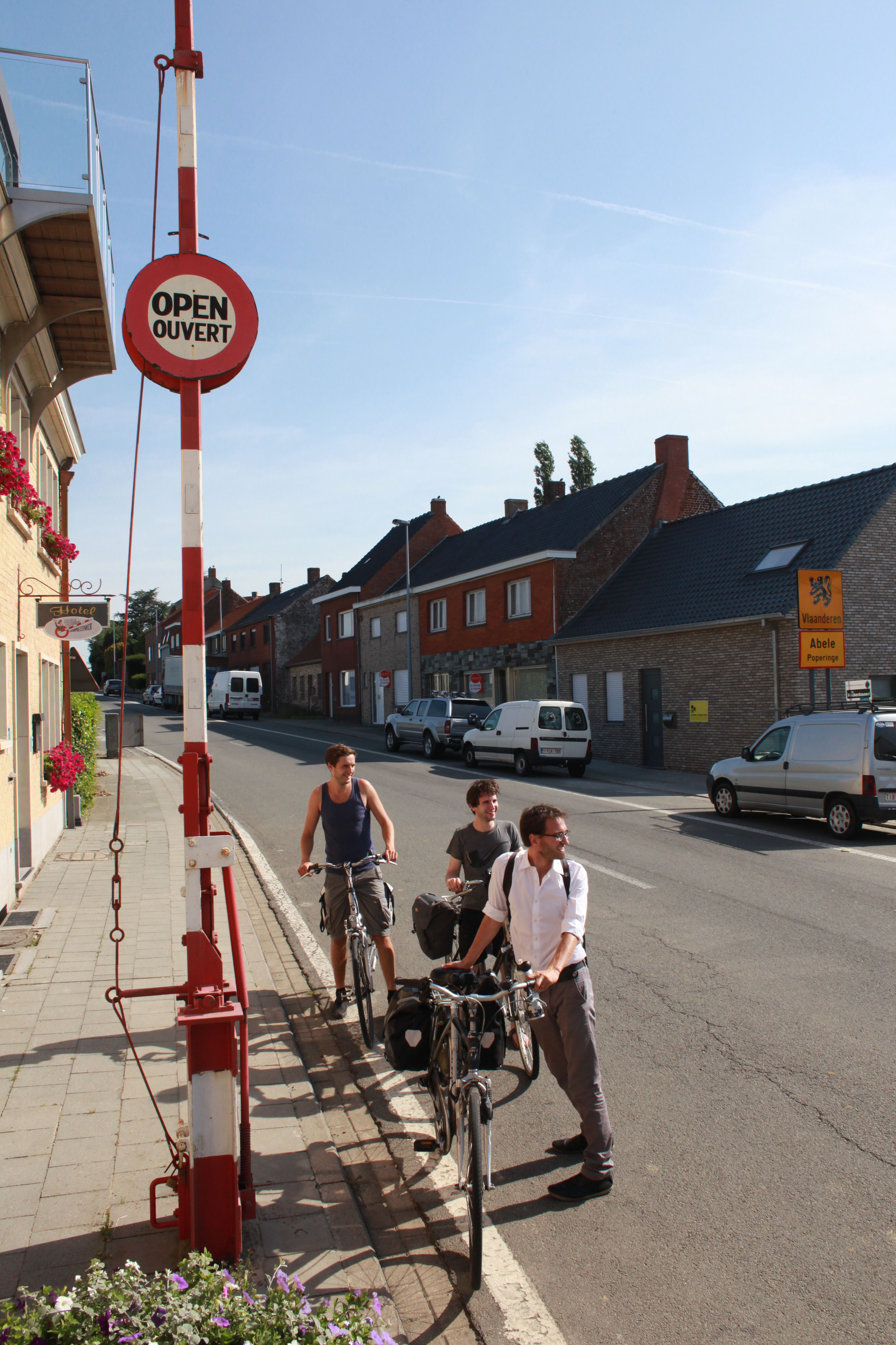 Etienne (18 jaar), zijn jongere broer André (16 jaar) en hun drie buurjongens Rafaël De Cubber (16 jaar), Roger Langie (17) en Cyr Laurier (15 jaar, en eigenlijk niet verplicht om te gaan!) vertrokken in de vroege ochtend van 16 mei 1940 aan het Sint-Pietersstation in Gent. Ze staken nog diezelfde dag de grens over en kwamen na een avontuurlijke negendaagse fietstocht van 625 kilometer diep in Normandië terecht. Ze ontsnapten maar op het nippertje aan de Duitse omsingeling van Duinkerke. Op de derde dag zagen ze in het departement Somme zelfs twee Duitsers, ‘elk twee revolvers in de hand. We hieven bevend onze handen op en voor onze verwonderde ogen, gedurende wel tien minuten, defileerden ’n hele kolom Duitse tanks, antitanks en transportwagens. Ze lieten ons verder met rust en we reden in snel tempo naar ’t westen.’