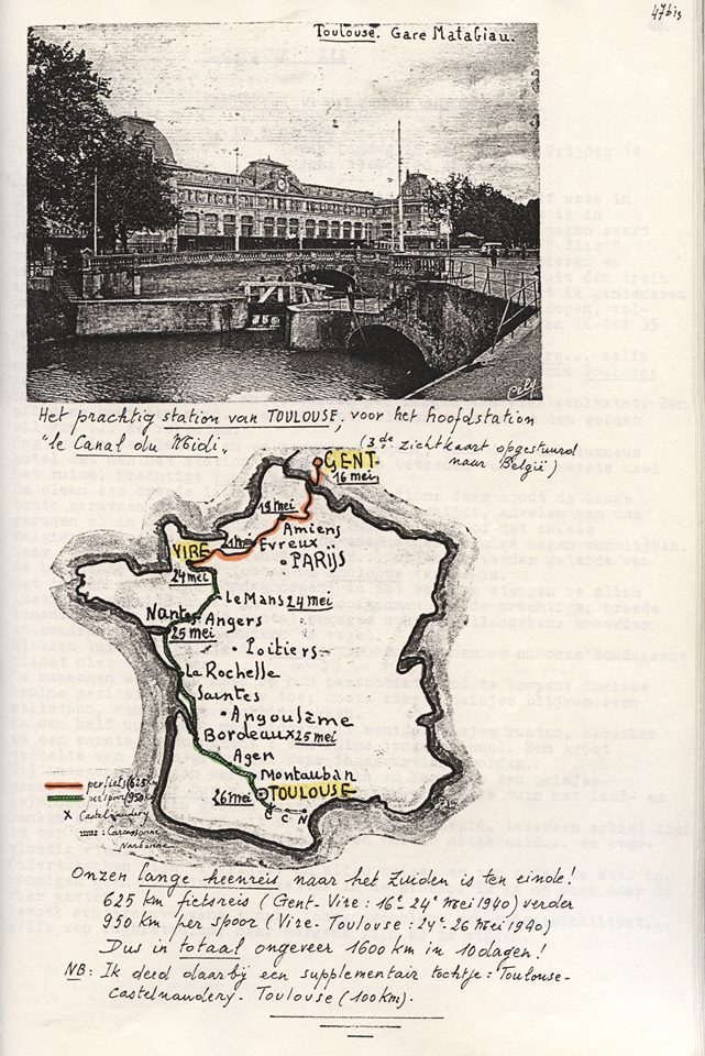 Uiteindelijk namen ze in het Normandische Vire een van de ingelegde treinen, die de duizenden aangestrande jongens naar Toulouse moesten brengen. De vijf waren niet eens opgelucht: ‘We voelen ons een beetje schuldig, gelijk renners van de Ronde van Frankrijk die opgeven en die per trein de Ronde zouden verlaten.’