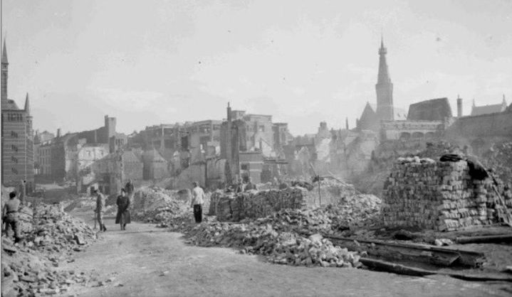 Net als in Mortsel was het een geval van collateral dammage. De stationswijk was volledig platgegooid. De trein naar Arnhem die om 13:30 uur zou vertrekken brandde uit. Twee hotels nabij kregen voltreffers. Het stadscentrum werd in zijn hart getroffen. Vandaag is de schade nog zichtbaar in de bizarre afwisseling van historische en moderne gebouwen. Elke straat in het centrum was praktisch vernield. Overal speelden zich drama’s af, zoals in een damesconfectiezaak in de Lange Burchtstraat, waar de baas en achttien medewerksters omkwamen. De winkelende mensen waren na het valse luchtalarm terug de straat op gegaan en kregen te weinig tijd om te schuilen toen het alarm opnieuw klonk.