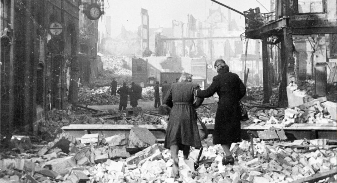 ‘Er was geen luchtalarm’, vertelde de toen zeventienjarige Bert Hilkes, ‘maar wat er toen gebeurde is niet te beschrijven. Het lawaai, de luchtdruk, de lichtflitsen. Op een of andere manier raakte ik buiten westen en toen ik minuten daarna weer bij mijn positieven kwam, bevond ik mij in een andere wereld. Alles lag in puin. Mensen schreeuwden en renden weg. Met nog vier anderen kwam ik terecht in een kleine toiletruimte. Dat lijkt wel vreemd, maar dat is het niet. De ervaring had geleerd dat bij gebombardeerde huizen het toilet meestal overeind bleef staan, een kleine ruimte tussen vier stevige muren.’
