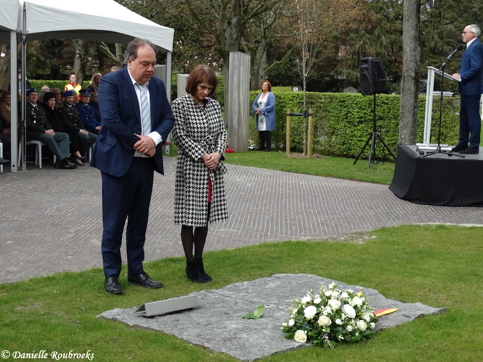 De huidige en vroegere burgemeester brengen samen hulde aan de slachtoffers. -