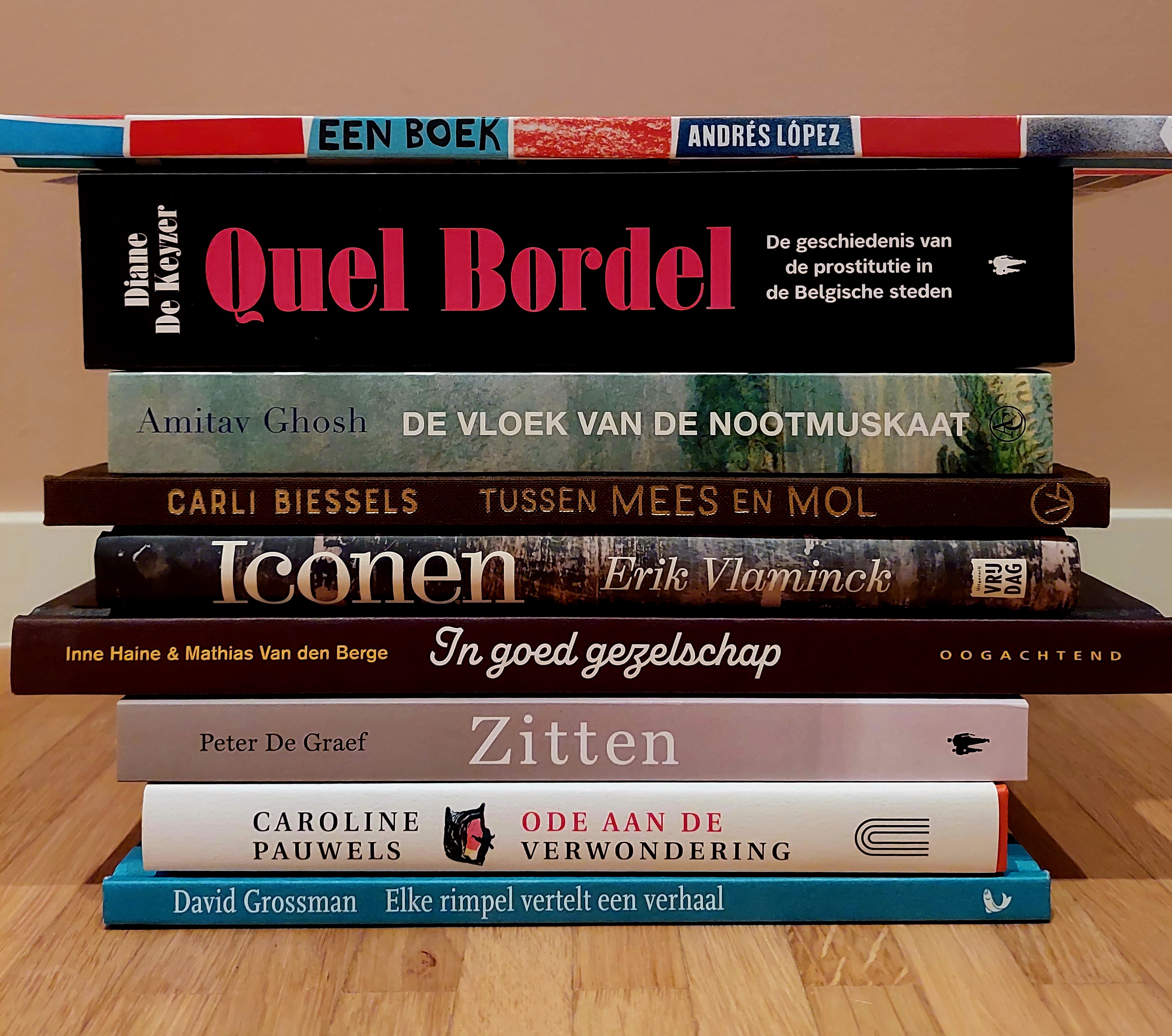 Om mijn auteursfeestje compleet te maken passeerde ik langs een van mijn favoriete boekhandels: De Boekuil. Zo vulde ik mijn overvolle kast aan met nog negen boeken die ik dit jaar zeker wil lezen. Ik koos gepaste titels met woorden die mijn eigen negen boeken van de afgelopen vijftien jaar typeren. Want wat begon in 2008 met een boek, is een ontdekkingstocht in de geschiedenis geworden. Ik heb gevloekt bij elke harde noot om te kraken, maar door als een mol steeds dieper te graven naar oude vergeten verhalen, dankzij inspiratie van enkele iconen en in goed gezelschap van collega-auteurs en zovele andere boekenmensen, bleef ik schrijven. En af en toe ging ik even zitten om te bedenken wat ik nog wil maken. Dat deed ik de afgelopen maanden en die tijd gun ik mijzelf nog even. Zo hoop ik vol verwondering verder te zoeken in ons verleden om nog meer bijzondere verhalen en getuigenissen te delen. Onze geschiedenis is immers iemand van wie elke rimpel een verhaal vertelt.