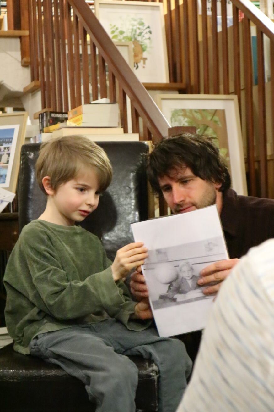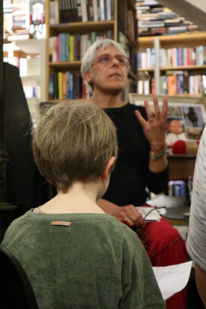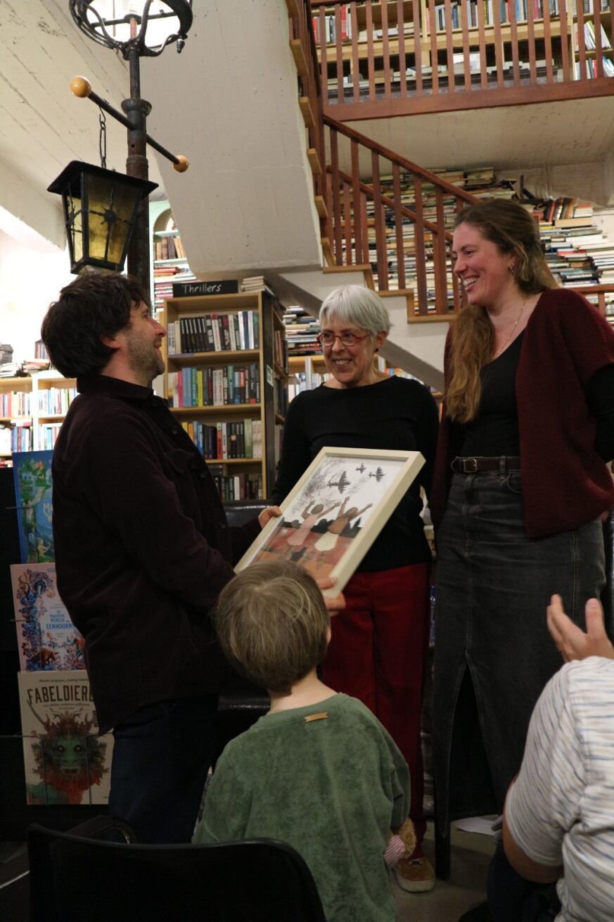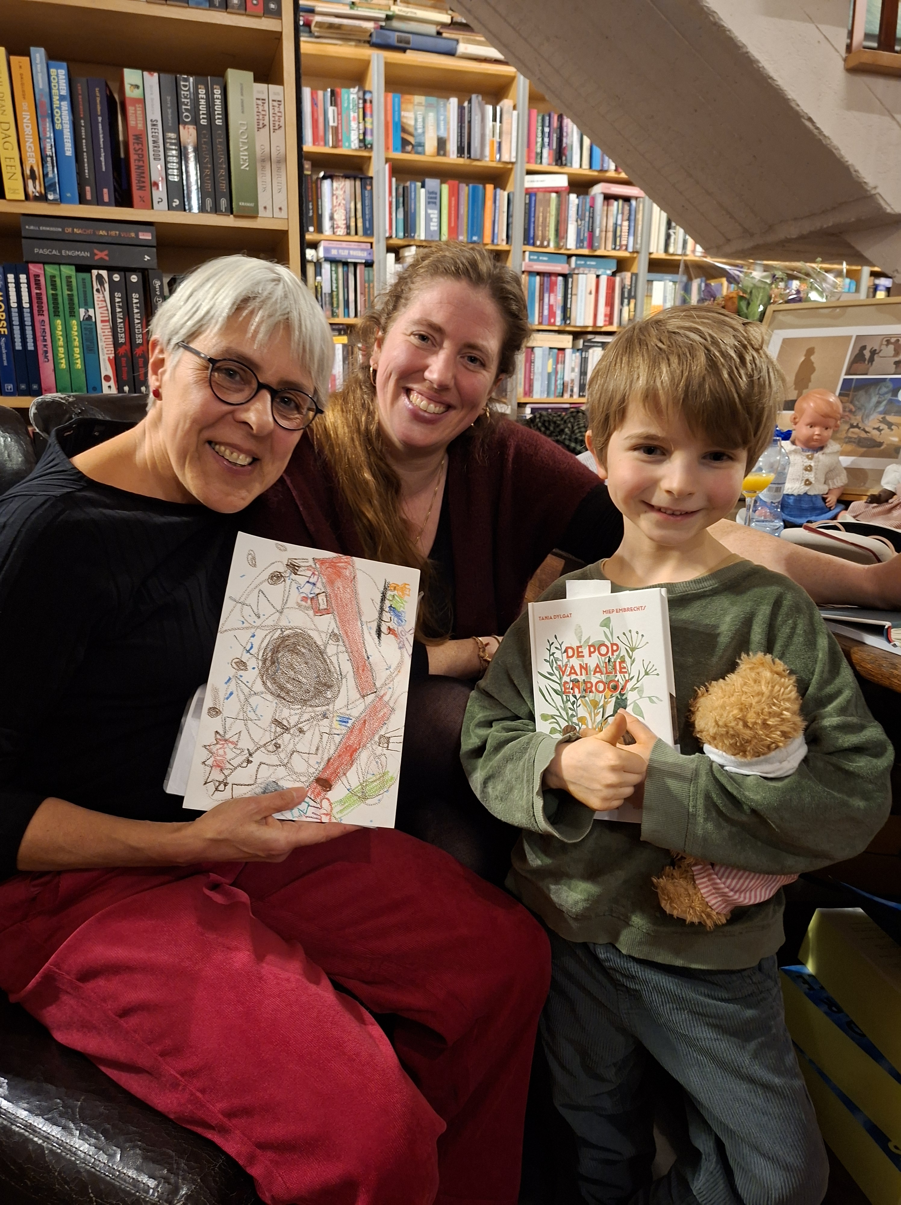 Drie weken mocht ik samen met mijn zoontje Chiel het prachtige boek De pop van Alie en Roos voorstellen in een volgeladen Boekuil in Mortsel. Ik had de eer om de auteur Tania Dylgat te begeleiden tijdens haar schrijfproces, haar te vertellen over het bombardement van 5 april 1943 en het lange zwijgen in onze stad. Het was nog een grotere eer om het boek te lezen samen met mijn zoon, die het aandurfde om tijdens de voorstelling het woord te nemen en enkele vragen te stellen. Tania en de illustrator Miep Embrechts toonden ons en het geïnteresseerde publiek hoe ze het verhaal van Alie en Roos hebben verwerkt in een uniek kinderboek. Na de voorstelling kreeg Chiel een gepersonaliseerde boodschap in morsecode en een papieren bootje gevouwen van Tania’s schrijfnotities. Ik kreeg een ingekaderde prent uit het boek: de twee meisjes Alie en Roos die zwaaien naar de geallieerde vliegtuigen zonder dat ze beseffen dat spoedig niet alleen de Duitse vijanden maar zijzelf gebombardeerd zouden worden…