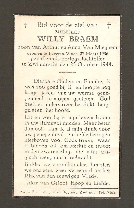 Er waren vier doden toen er op 25 oktober 1944 een V in de buurt van het fort van Zwijndrecht viel. Een van hen was de achtjarige Willy Braem.