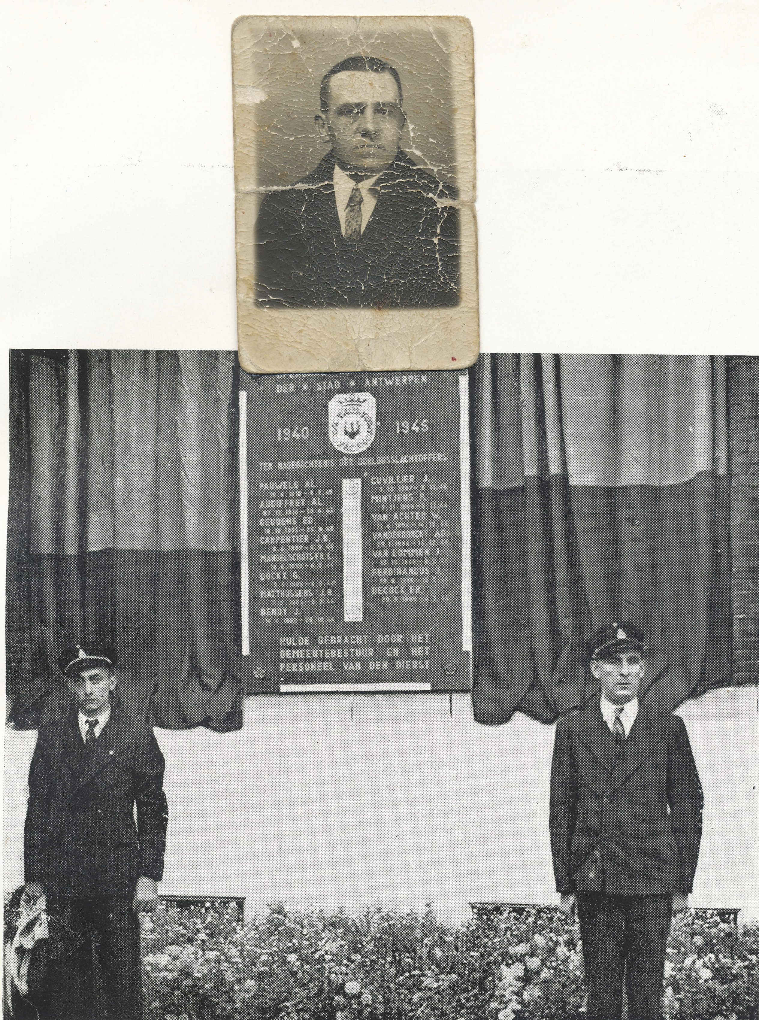 Jarenlang heeft er een herdenkingsplaat voor Jozef “Jef” Benoy aan de stadsgebouwen. Ondertussen is deze verdwenen. De stad herdacht een van haar trouwste werknemers met deze tekst: ‘Jef was een echt Sinjorentype: guitig en goed gehumeurd. En toch bracht het leven deze volksjongen vele teleurstellingen, want hij had steeds voor alles en nog wat een kwinkslag klaar. Zijn vrolijkheid en optimisme waren nooit zoek. Hij leefde voor zijn familie, was vader van zes kinderen, voor welker opvoeding hij zich fel inspande. Binnenkort zou hij op rust gaan, na vele jaren dienst als karlader bij O.R.D. Het heeft niet mogen zijn: door een vliegende bom, die zeer vele slachtoffers maakte in de Bontemantelstraat, werd hij op 3 november 1944 gedood. Hij is eerlijk en eenvoudig door het leven gegaan, zoals de meeste arbeiders trouwens die bij eendezelfde bominslag getroffen werden. Met zijn echtgenote had hij alle lief en leed gedeeld tijdens het al te korte leven. Zij ging ook met hem de dood in.’ Blijkbaar stierf dus ook Jef Benoy pas na enkele dagen aan zijn verwondingen.