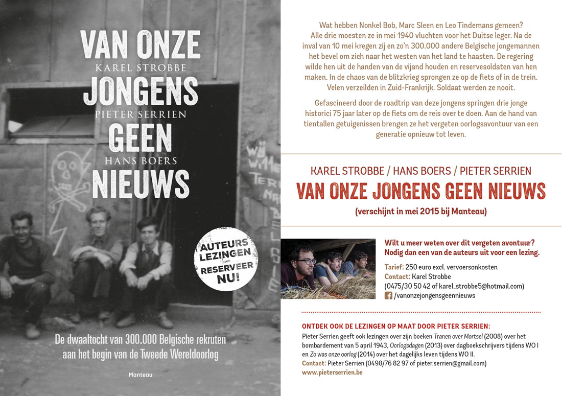 zomerzon stonden er in schril contrast met verveling, honger en bittere heimwee. Soldaat werden ze nooit. Gefascineerd door de roadtrip van deze jongens springen drie jonge historici (Karel Strobbe, Hans Boers en Pieter Serrien) 75 jaar later op de fiets om de reis over te doen. Op hun beurt dwalen ze door België, Noord-Frankrijk en de Franse Midi. Aan de hand van tientallen getuigenissen brengen ze het vergeten oorlogsavontuur van een generatie opnieuw tot leven.
