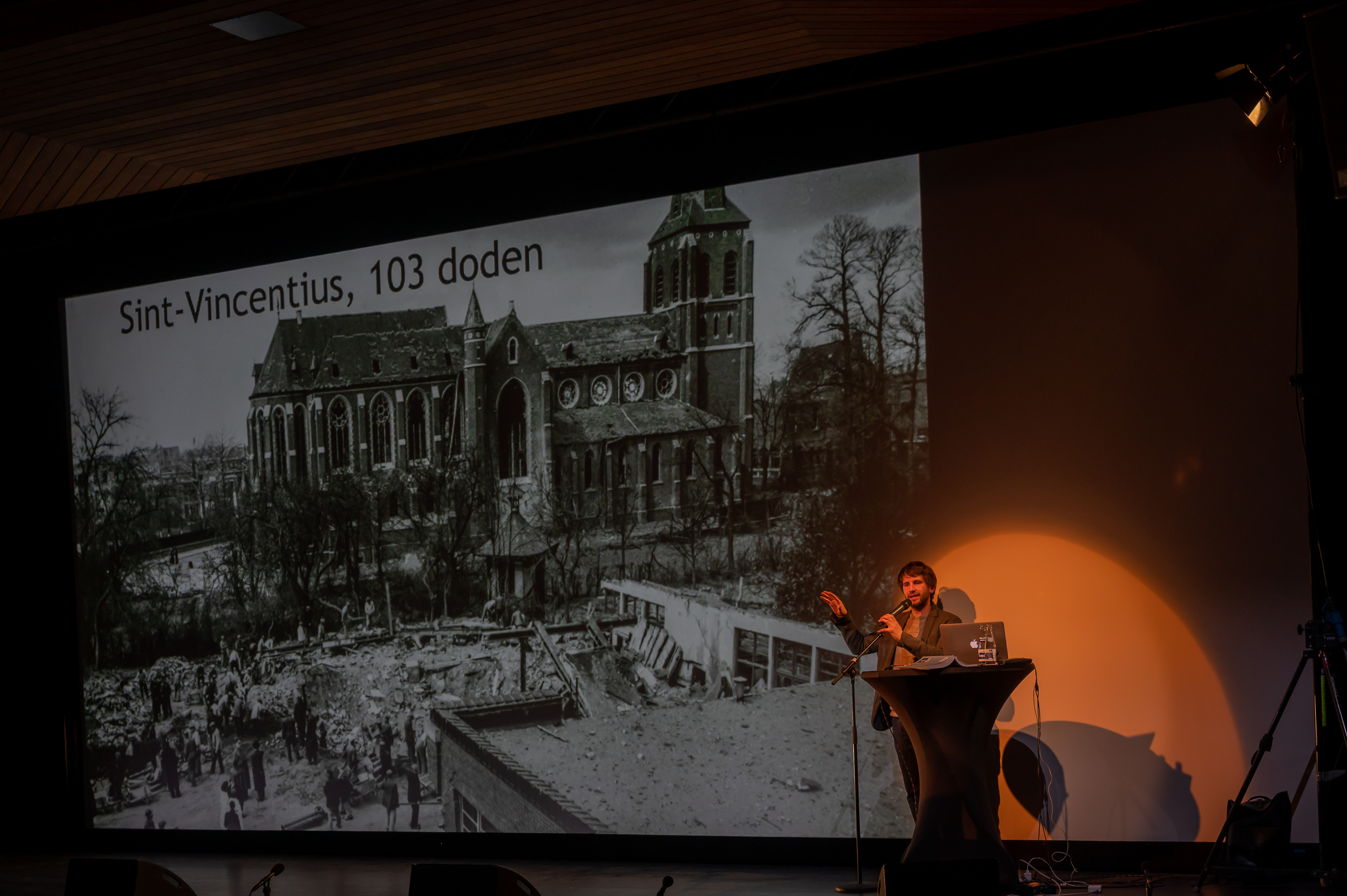 Dit jaar was het 80 jaar geleden dat Mortsel werd gebombardeerd. Samen met de stad en onze vzw organiseer ik de herdenking. Er was lezingenreeks met Frank Seberechts, Rudi Vranckx en Herman Van Goethem en op 7 april mocht ik de slotlezing geven over de getuigen van het bombardement. Op 1 april is er de officiële herdenkingsplechtigheid (foto’s). Datzelfde weekend waren er verschillende kunstevenementen. Op 5 april vond er een unieke herdenking plaats en symboliseerden we met 936 vrijwilligers de 936 slachtoffers van 80 jaar geleden (foto’s).