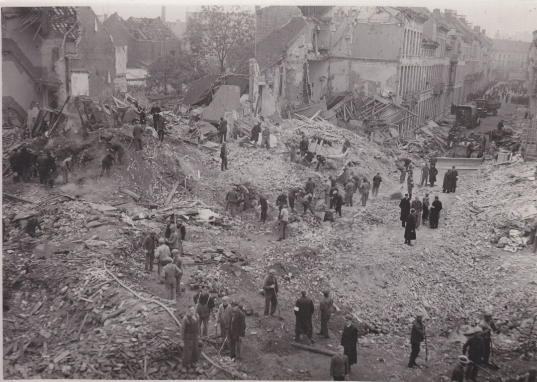 Terugkomende op het bombardement van 19 oktober 1944 wil ik nog kwijt dat dit niet enkel sporen nalaat op de betrokkenen, maar het leed gaat zelfs over de generaties. Ik ben, op drie dagen na, tien jaar later geboren en door de verhalen te horen en het feit dat ik mijn bompa niet heb gekend, voel ook ik veel verdriet en gemis. De eerste keer dat ik de foto’s van de Kroonstraat zag waren een echte schok voor mij. Ik ween nog voor mijn bompa die ik nooit heb gekend. R.I.P. bompa Eduard XXX