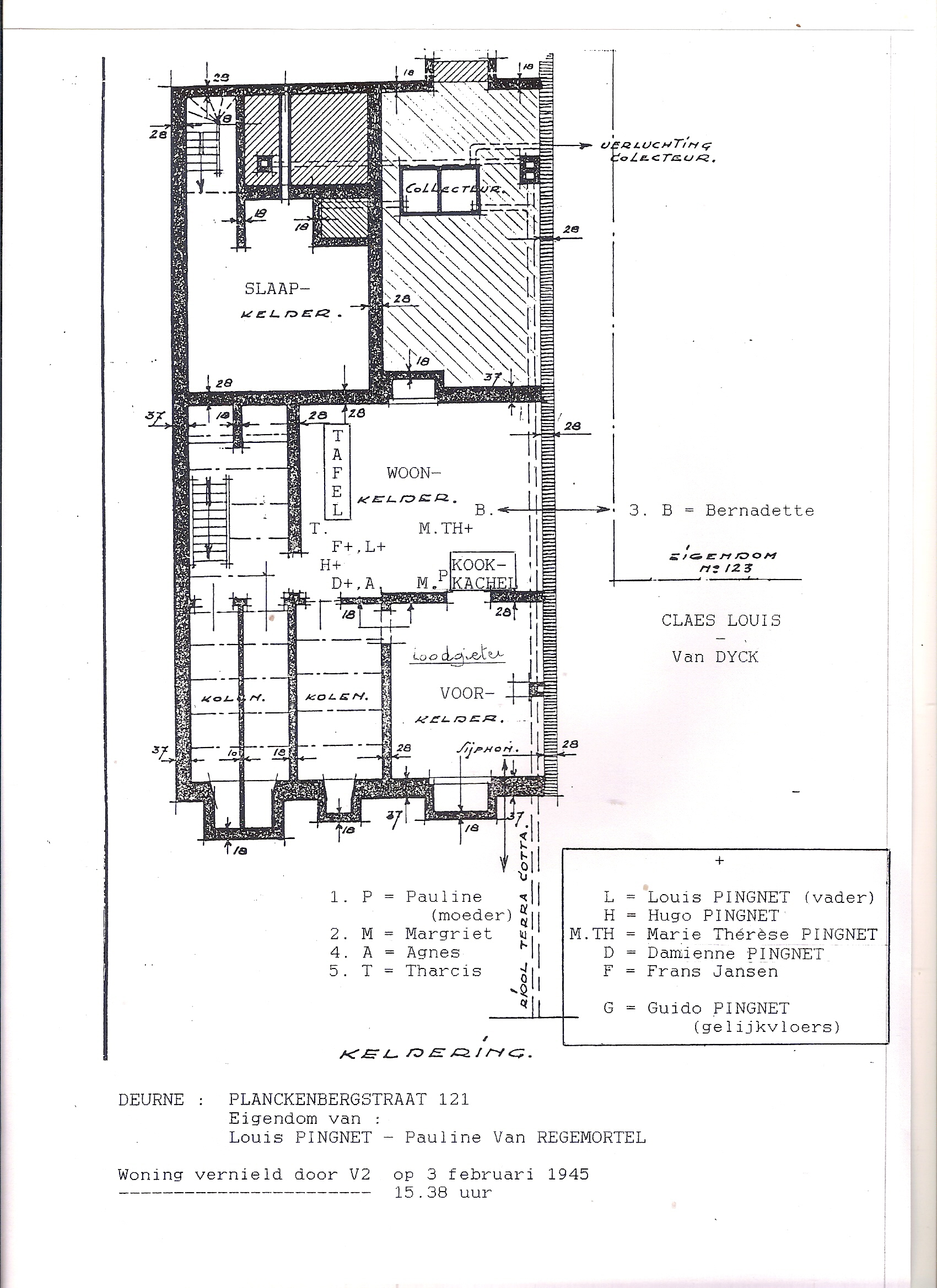 Vader Louis Pingnet (°1900) werd samen met zijn zonen Hugo (°1926) en Guido (°1934) en zijn dochters Marie-Thérèse (°1931) en Damienne (°1938) dood onder het puin vandaan gehaald, net als Frans Jansen (°1926), die op de fatale dag een bezoek bracht aan zijn vriend Hugo. De oudere kinderen Jos en Maria waren niet aanwezig. De moeder en haar kinderen Agnes, Margriet, Tharcis en Bernadette overleefden het drama. In totaal waren er zestien doden in de straat.